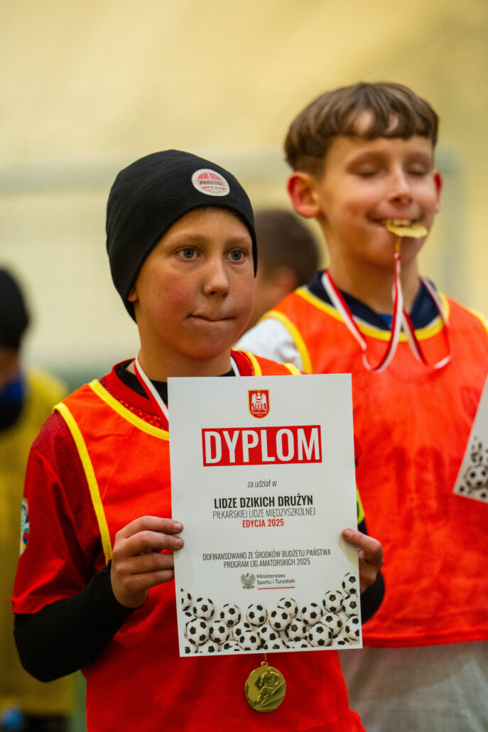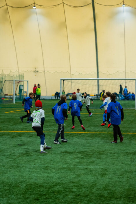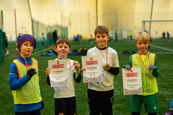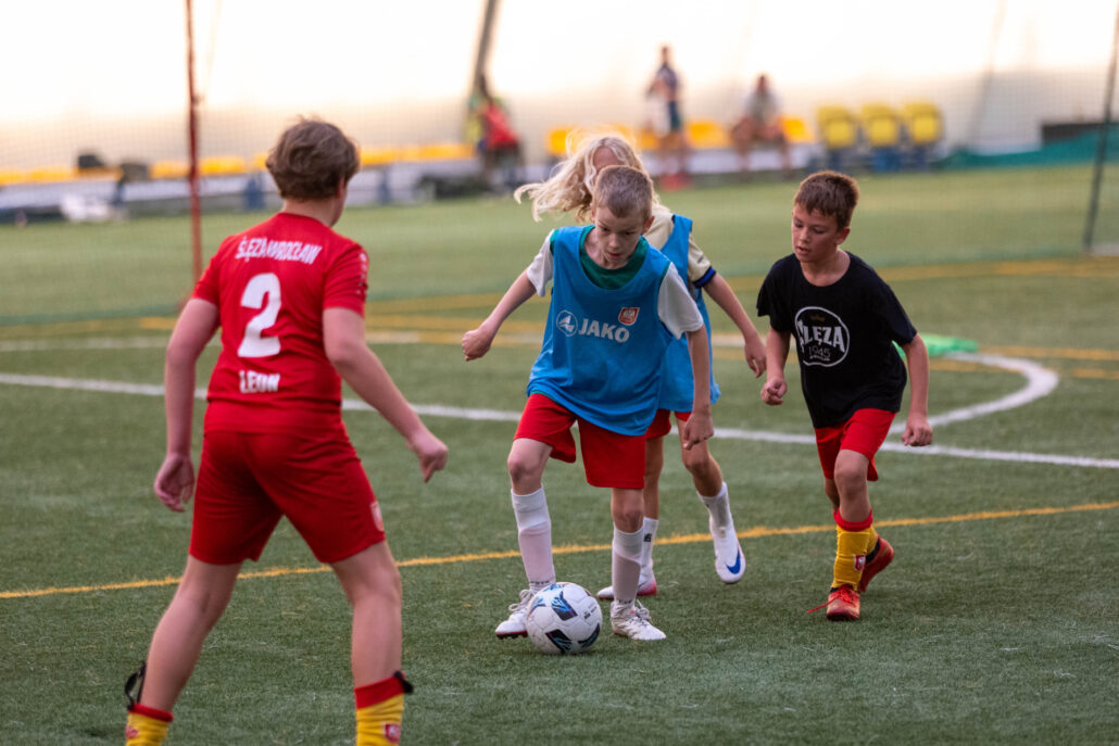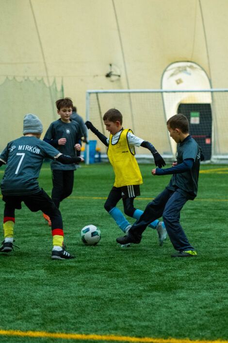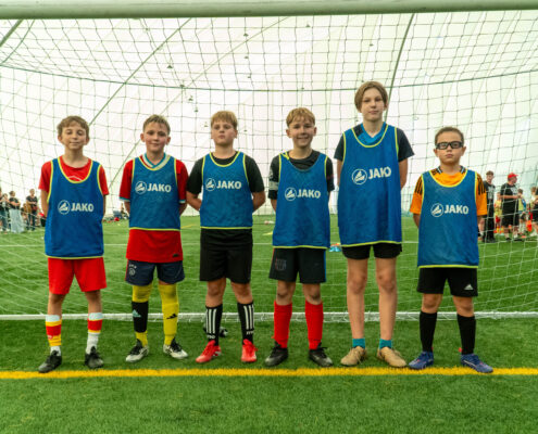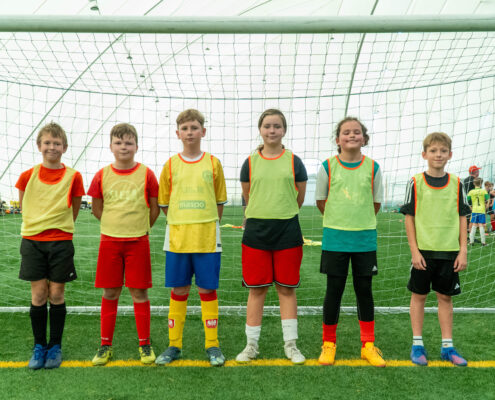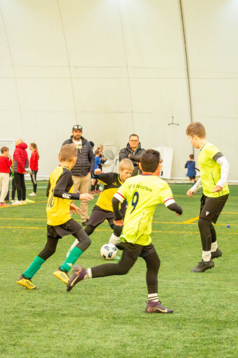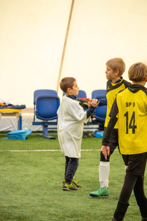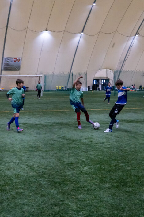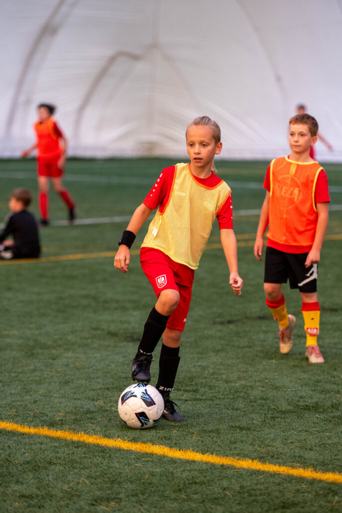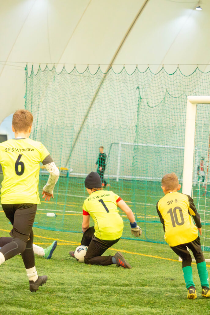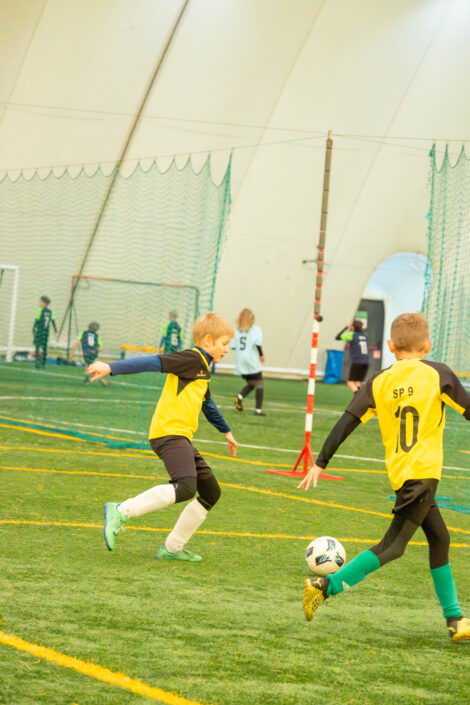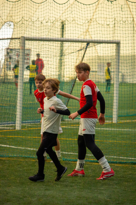 Każda drużyna zagra w ramach jednego turnieju minimum 10 meczów, zależnie od liczby zgłoszonych zespołów. – Czas trwania meczu: 2 x 5 minut lub 2 x 7 minut – długość uzależniona będzie od liczby drużyn w danej kategorii wiekowej, aby zapewnić równomierne i sprawiedliwe szanse wszystkim uczestnikom. – Mecze rozgrywane będą w systemie grupowym z ewentualną fazą pucharową lub każdy z każdym – w zależności od liczby drużyn. – Sędziowie z doświadczeniem w pracy z dziećmi będą prowadzić każde spotkanie, dbając o przestrzeganie zasad fair play i bezpieczeństwo uczestników. Punktacja i klasyfikacja: – Po każdym turnieju drużyny otrzymają punkty zgodnie z systemem (np. 3 pkt – wygrana, 1 pkt – remis, 0 pkt – przegrana). – Łączna suma punktów z obu turniejów wyłoni zwycięzców ligi. W przypadku równej liczby punktów decydować będą kolejno: bilans bramek, liczba zwycięstw, bezpośredni pojedynek. Skład drużyny: Każdy zespół liczyć będzie 10 zawodników: 4 graczy w polu + 1 bramkarz + 5 rezerwowych. Rotacja zawodników podczas meczu będzie dowolna, co pozwoli każdemu dziecku wziąć aktywny udział w grze.