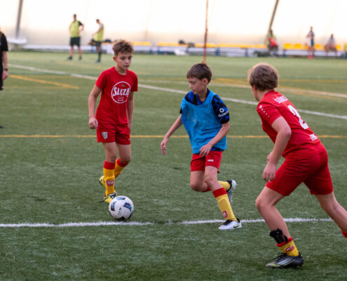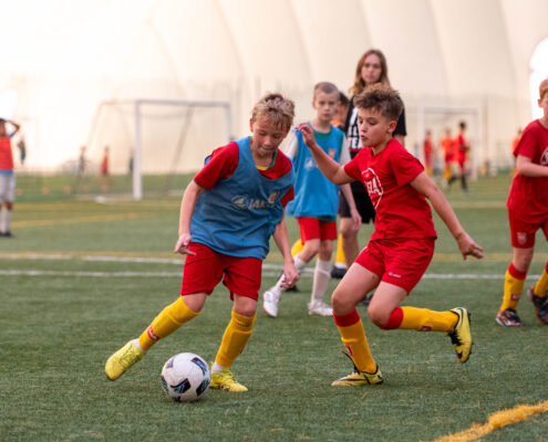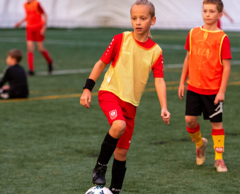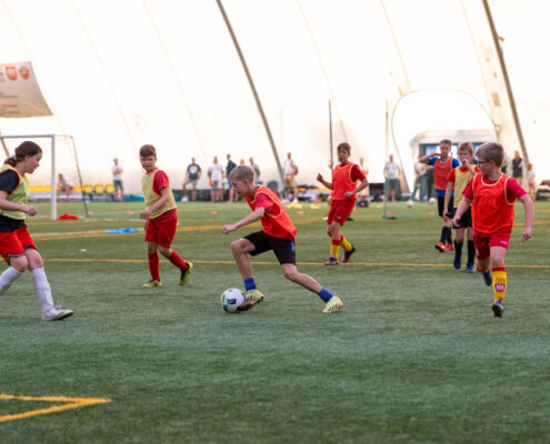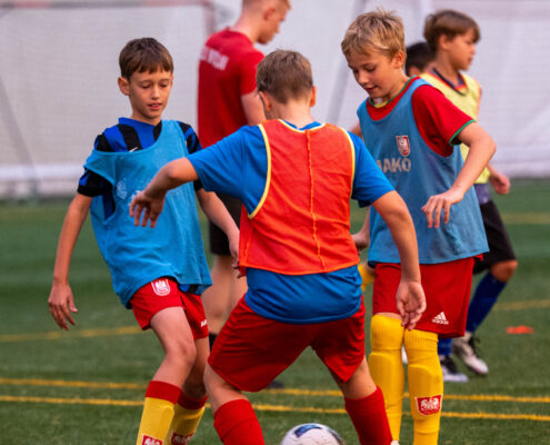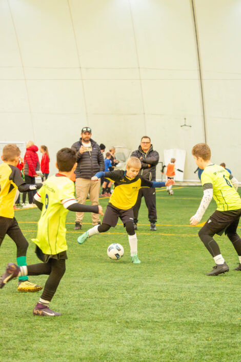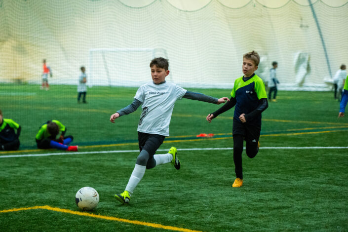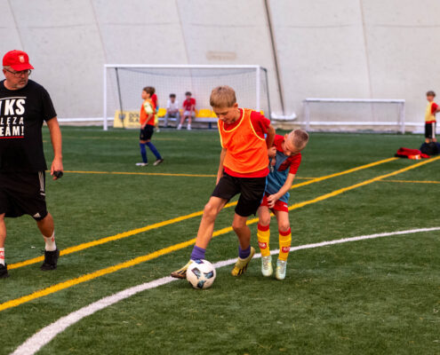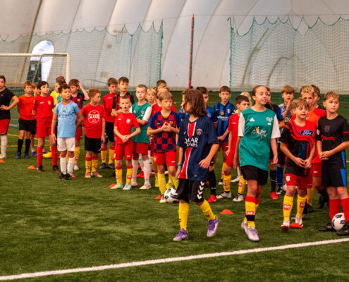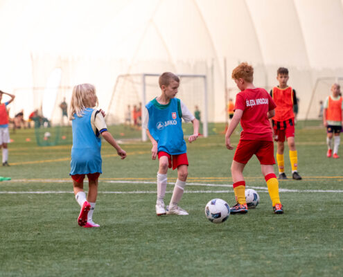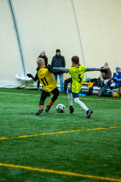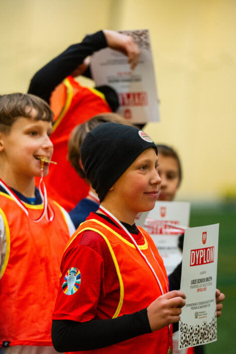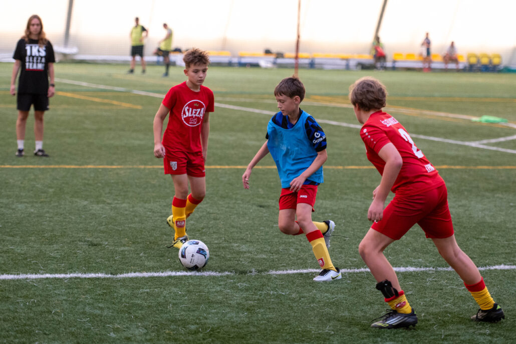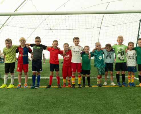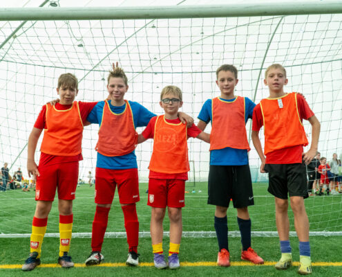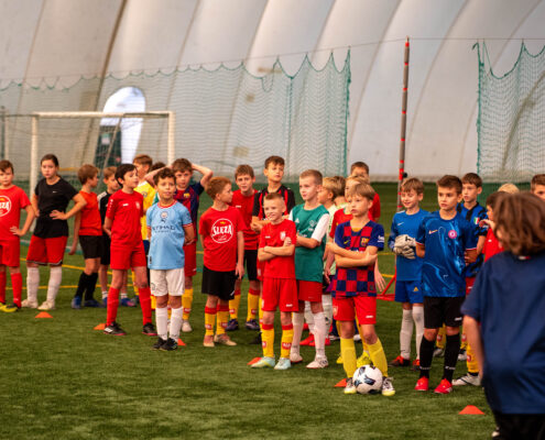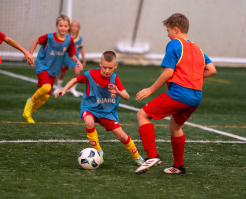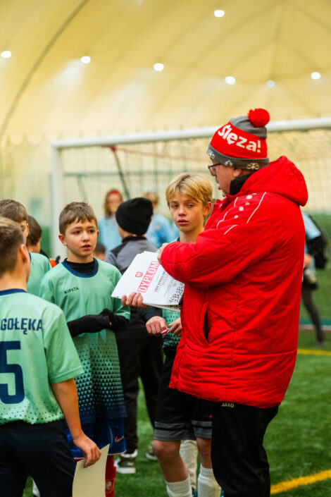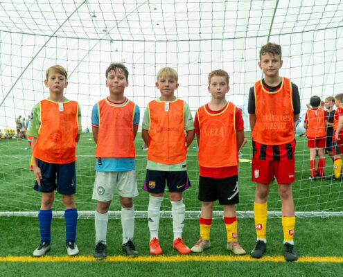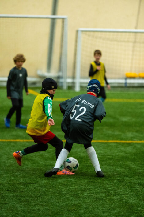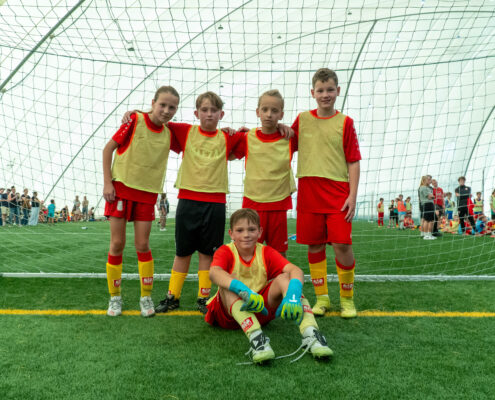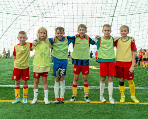Każda drużyna zagra w ramach jednego turnieju minimum 10 meczów, zależnie od liczby zgłoszonych zespołów. – Czas trwania meczu: 2 x 5 minut lub 2 x 7 minut – długość uzależniona będzie od liczby drużyn w danej kategorii wiekowej, aby zapewnić równomierne i sprawiedliwe szanse wszystkim uczestnikom. – Mecze rozgrywane będą w systemie grupowym z ewentualną fazą pucharową lub każdy z każdym – w zależności od liczby drużyn. – Sędziowie z doświadczeniem w pracy z dziećmi będą prowadzić każde spotkanie, dbając o przestrzeganie zasad fair play i bezpieczeństwo uczestników. Punktacja i klasyfikacja: – Po każdym turnieju drużyny otrzymają punkty zgodnie z systemem (np. 3 pkt – wygrana, 1 pkt – remis, 0 pkt – przegrana). – Łączna suma punktów z obu turniejów wyłoni zwycięzców ligi. W przypadku równej liczby punktów decydować będą kolejno: bilans bramek, liczba zwycięstw, bezpośredni pojedynek. Skład drużyny: Każdy zespół liczyć będzie 10 zawodników: 4 graczy w polu + 1 bramkarz + 5 rezerwowych. Rotacja zawodników podczas meczu będzie dowolna, co pozwoli każdemu dziecku wziąć aktywny udział w grze.