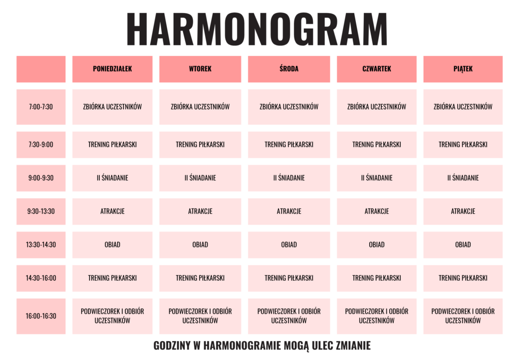 W tytule: Półkolonia + imię i nazwisko dziecka