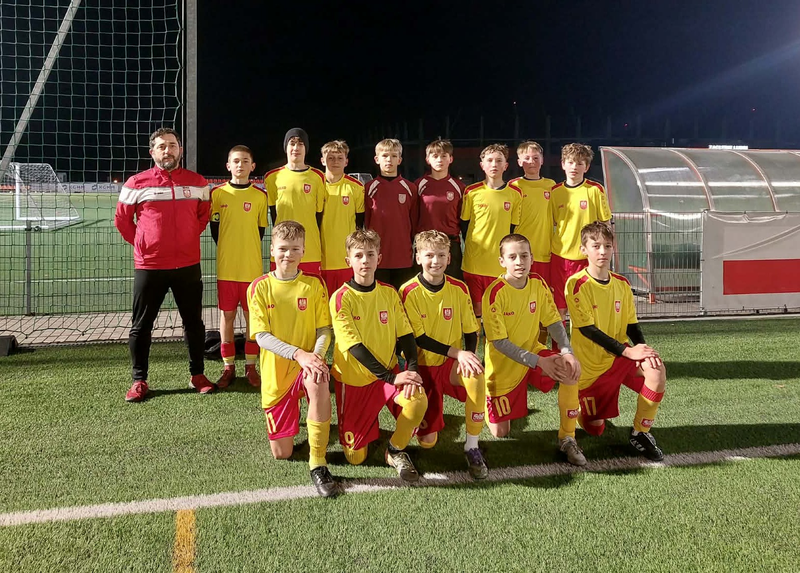 Trener Marcin Szczepankiewicz – Drużyna młodzików rozegrała kolejny fantastyczny mecz, z bardzo ciężkim rywalem na jego terenie. Zagłębie rozpoczęło jak zawsze od bardzo agresywnej gry i momentami kości trzeszczały, ale na szczęście sędziowie stanęli na wysokości zadania, odgwizdując niezliczoną ilość fauli przeciwnika. Mecz bardzo wyrównany z kilkoma sytuacjami bramkowymi po obu stronach. Kilkukrotnie piłka minimalnie mija bramkę rywala po groźnych strzałach naszych graczy ofensywnych. Przeciwnik nie ustępuje oddając groźny strzał z dystansu i wyprowadzając kontrę, po której piłka trafia w spojenie naszej bramki. Do przerwy 0:0. Po zmianie stron mecz nadal jest bardzo zacięty i rozgrywany w niewyobrażalnym tempie, ale z biegiem czasu udaje nam się zyskiwać coraz większą kontrolę nad środkową strefą boiska, kilkukrotnie zagrażając bramce przeciwnika. Zagłębie w tej części meczu gra coraz więcej długich piłek, a zagrożenie pod naszą bramką stwarza głównie po stałych fragmentach gry, szczególnie dośrodkowaniach z rzutów rożnych, które gospodarze mają już bardzo dobrze opanowane. Niestety to my tracimy bramkę po strzale z rzutu wolnego. Jednak bardzo dobrze zmotywowana drużyna, wspierana również przez liczne grono kibiców rzuciła się do falowych ataków na bramkę rywala, co w końcówce daje nam upragnionego gola po mocnym strzale z dystansu Gawreckiego. Próbujemy jeszcze wyszarpać wygraną ale agresywnie grający rywale nie oddają łatwo skóry i mecz kończy się remisem. Remisem po meczu walki i to walki na pełnym gazie do ostatniego gwizdka. Wynik cieszy tym bardziej, że graliśmy dziś bez trzech kluczowych zawodników, którzy nadal leczą urazy. Należy dodać, że w meczu o tak dużą stawkę zagrał u nas Tymek Jankowski z rocznika 2014 i nie odstawił nogi w ważnych momentach meczu.